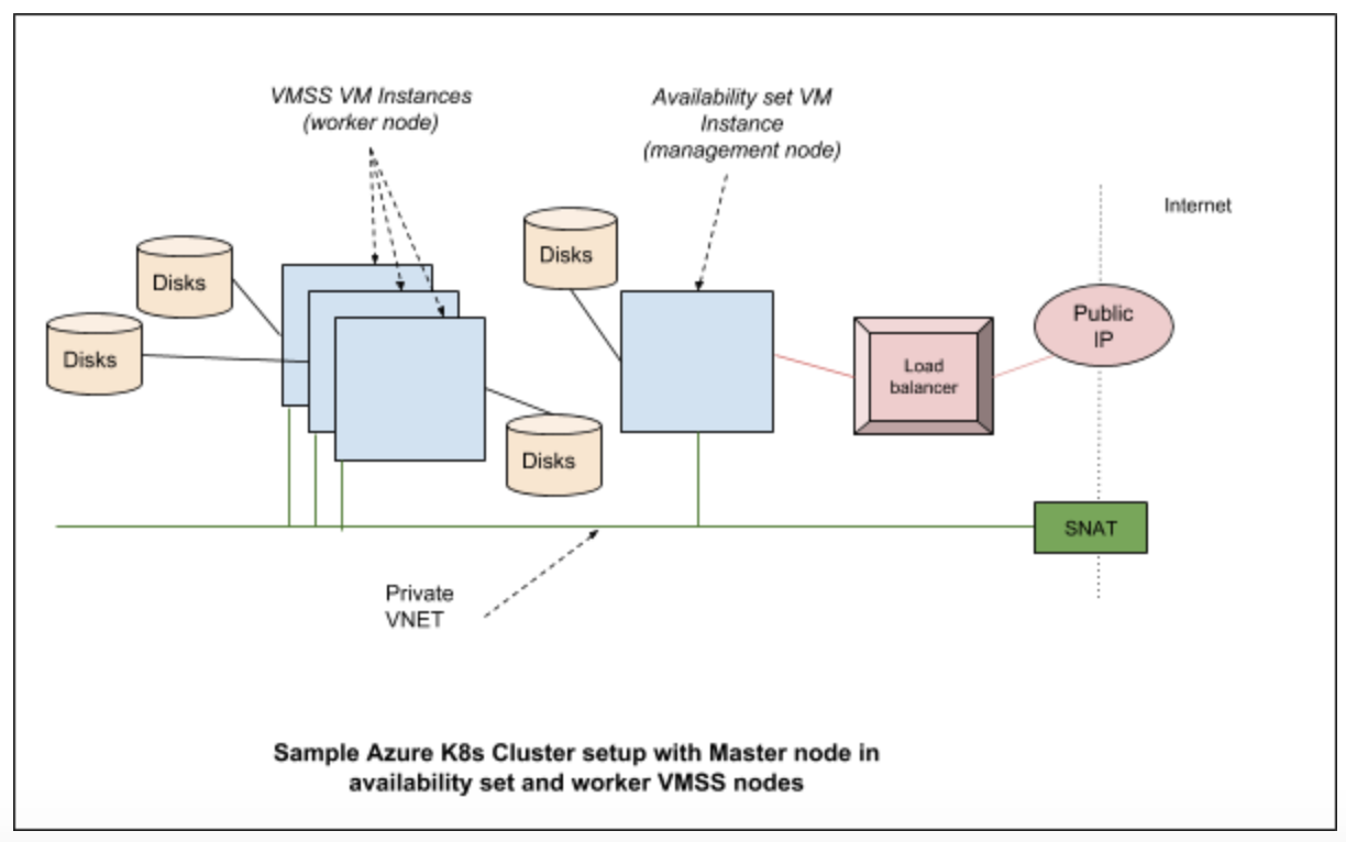 - VMSS on worker nodes and Availability set on master nodes combination.